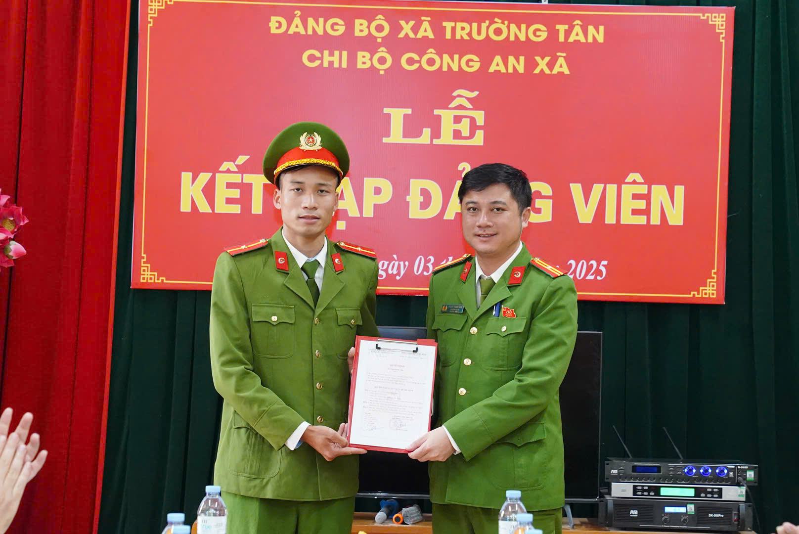 Chi bộ Công an xã Trường Tân tổ chức lễ kết nạp Đảng cho quần chúng ưu tú Phạm Văn Điển.