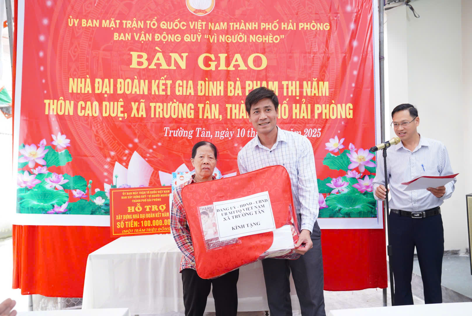 Sáng ngày 10/11, Ủy ban MTTQ Việt Nam thành phố Hải Phòng phối hợp với xã Trường Tân tổ chức lễ khánh thành và bàn giao nhà Đại đoàn kết cho bà Phạm Thị Năm, hộ nghèo ở thôn Cao Duệ, xã Trường Tân.