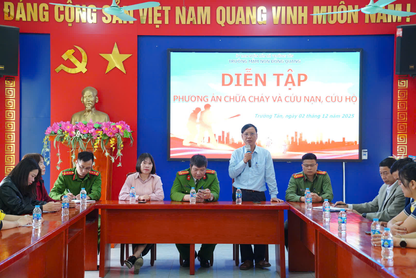 Trong hai ngày mùng 1, mùng 2.12, tại Trường Mầm non Đồng Quang, xã Trường Tân phối hợp Phòng Cảnh sát Phòng cháy chữa cháy và Cứu nạn cứu hộ thành phố Hải Phòng tổ chức lớp tập huấn công tác phòng cháy chữa cháy (PCCC) cho cán bộ, giáo viên các trường học trên địa bàn, . Dự buổi tập huấn có đồng chí Phùng Danh Âu – Đảng uỷ viên, Phó Chủ tịch UBND xã; lãnh đạo Phòng Cảnh sát PCCC thành phố và Công an xã Trường Tân.