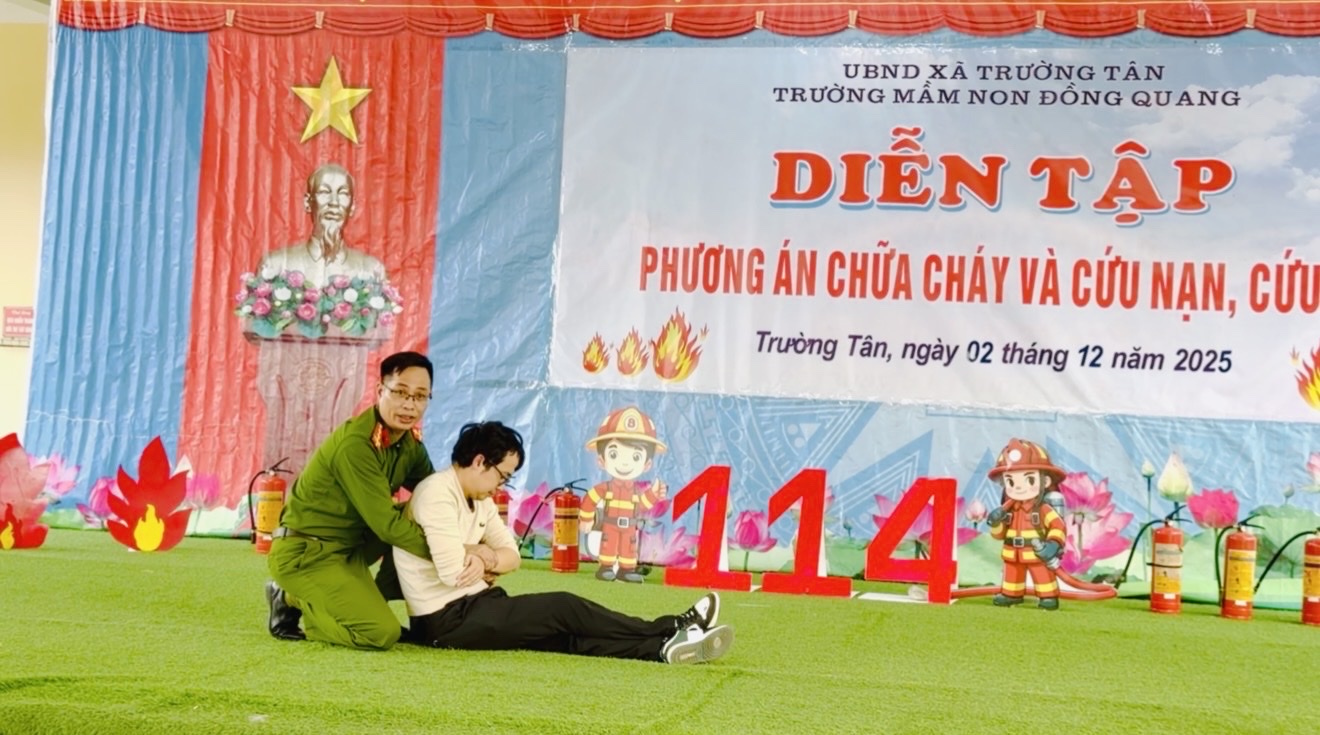 Lực lượng chức năng đã dành thời lượng hướng dẫn trực tiếp cho các cháu học sinh mầm non kỹ năng thoát nạn khi xảy ra cháy. Các em được thực hành kỹ năng cúi thấp người khi có khói, di chuyển theo hàng, dùng khăn ướt che mũi – miệng và nhận biết các lối thoát hiểm. Giáo viên mầm non được tập huấn phương pháp tổ chức sơ tán trẻ nhanh chóng, trật tự, đảm bảo an toàn tuyệt đối.