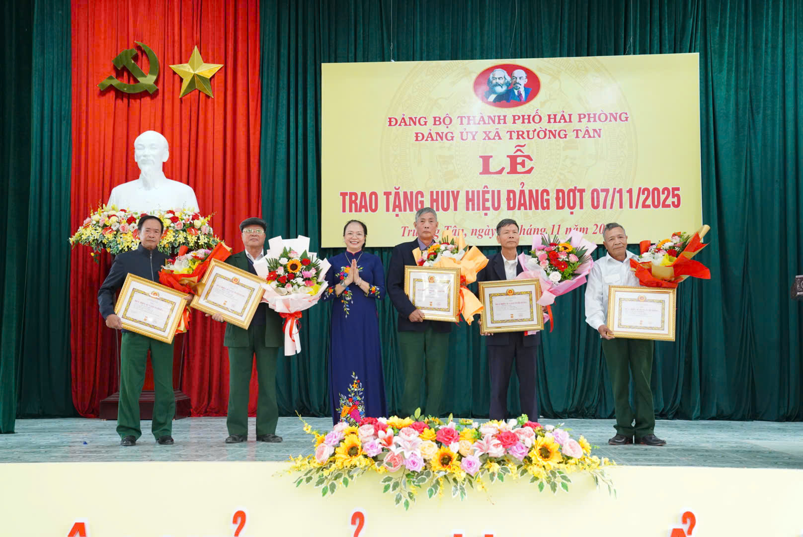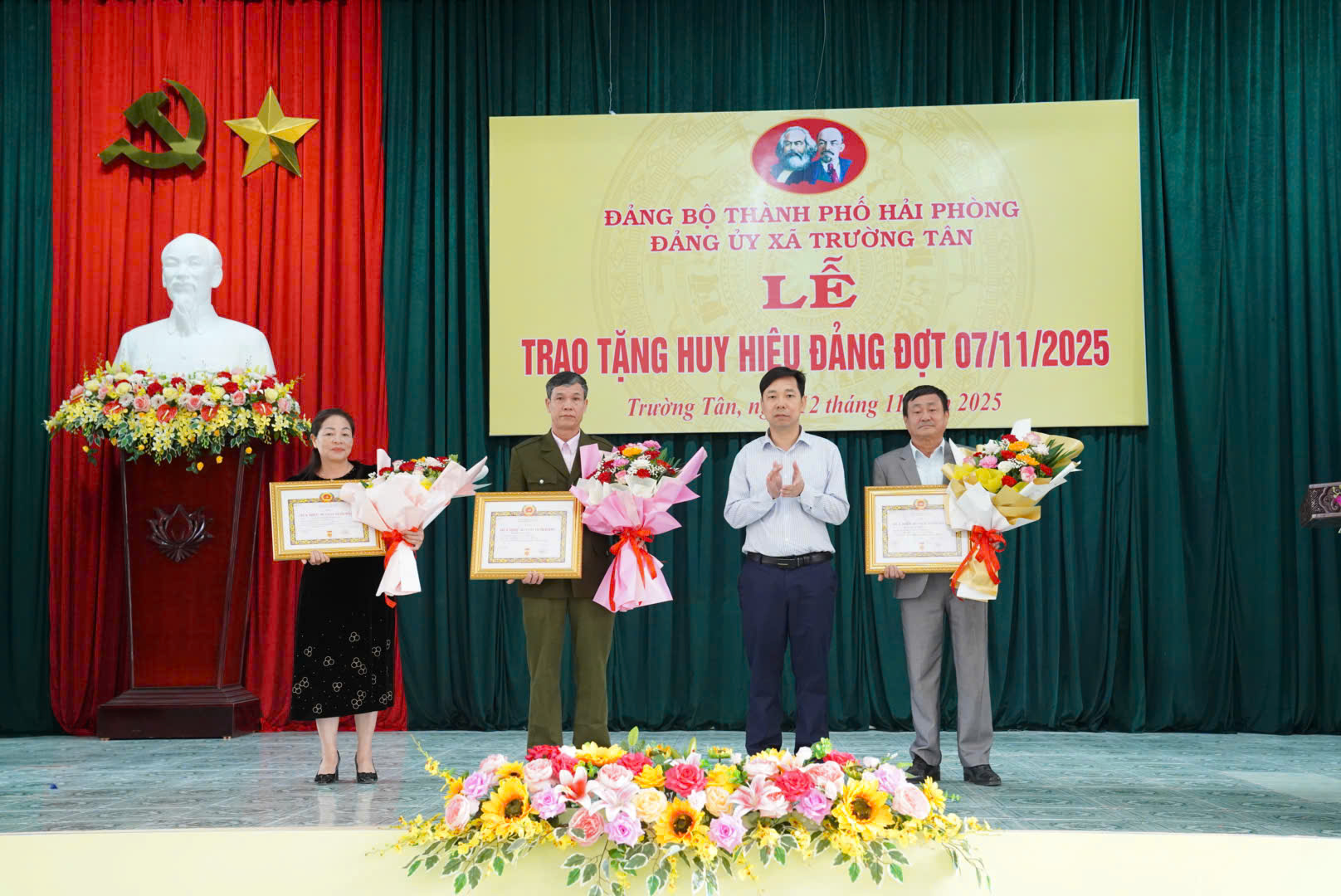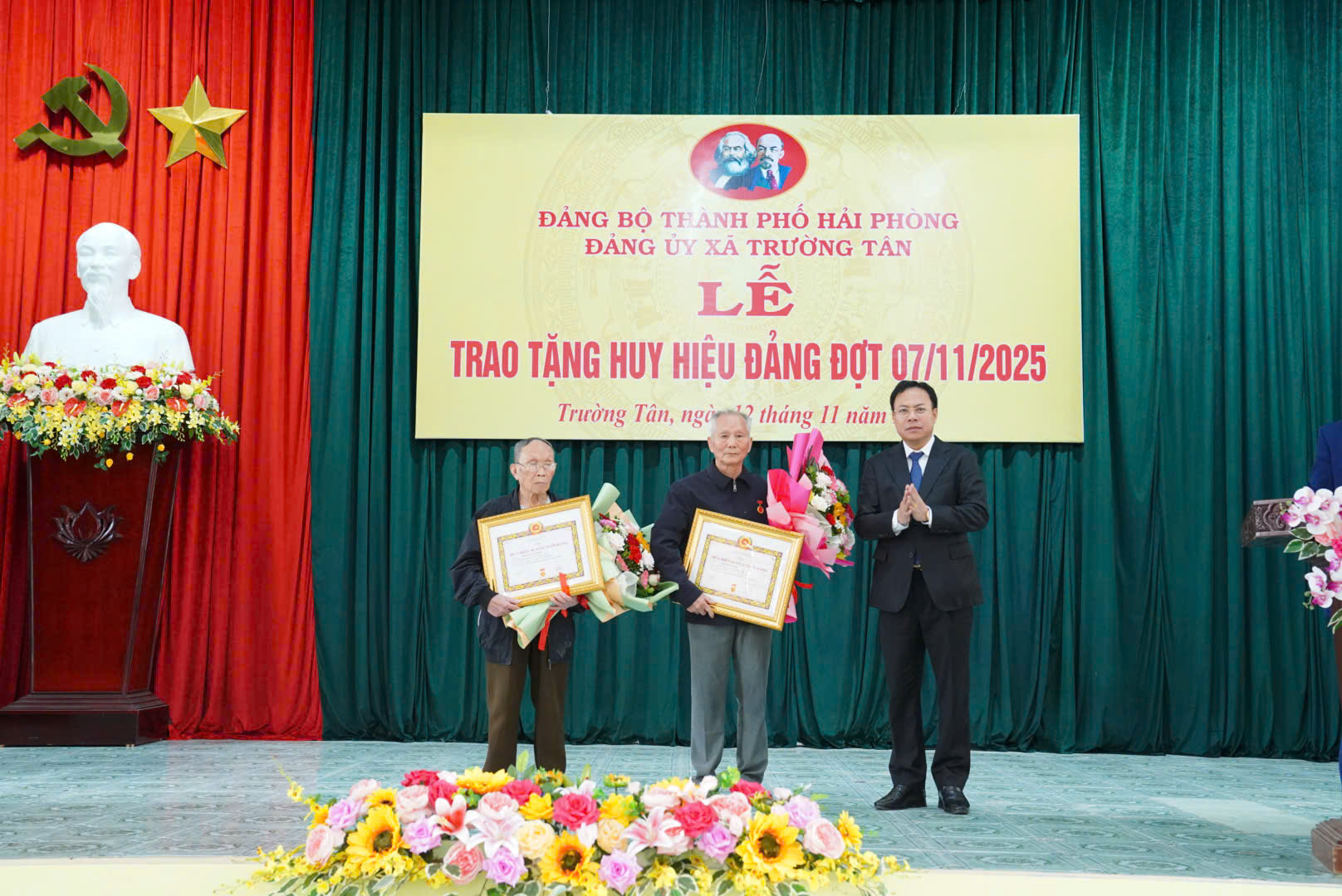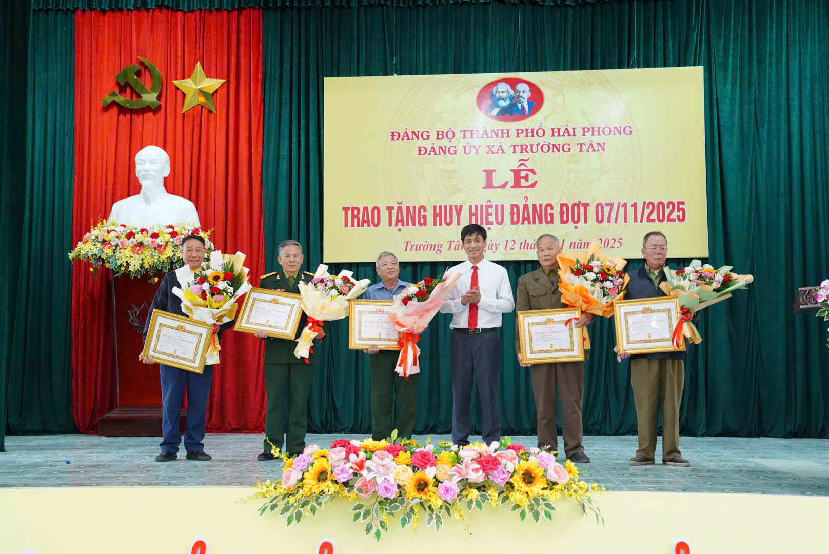 Sáng 12/11, Đảng ủy xã Trường Tân (thành phố Hải Phòng) tổ chức Lễ trao tặng Huy hiệu Đảng đợt 7/11/2025 cho các đảng viên đủ tiêu chuẩn, nhằm ghi nhận quá trình phấn đấu, rèn luyện, cống hiến của các đảng viên trong toàn Đảng bộ.
