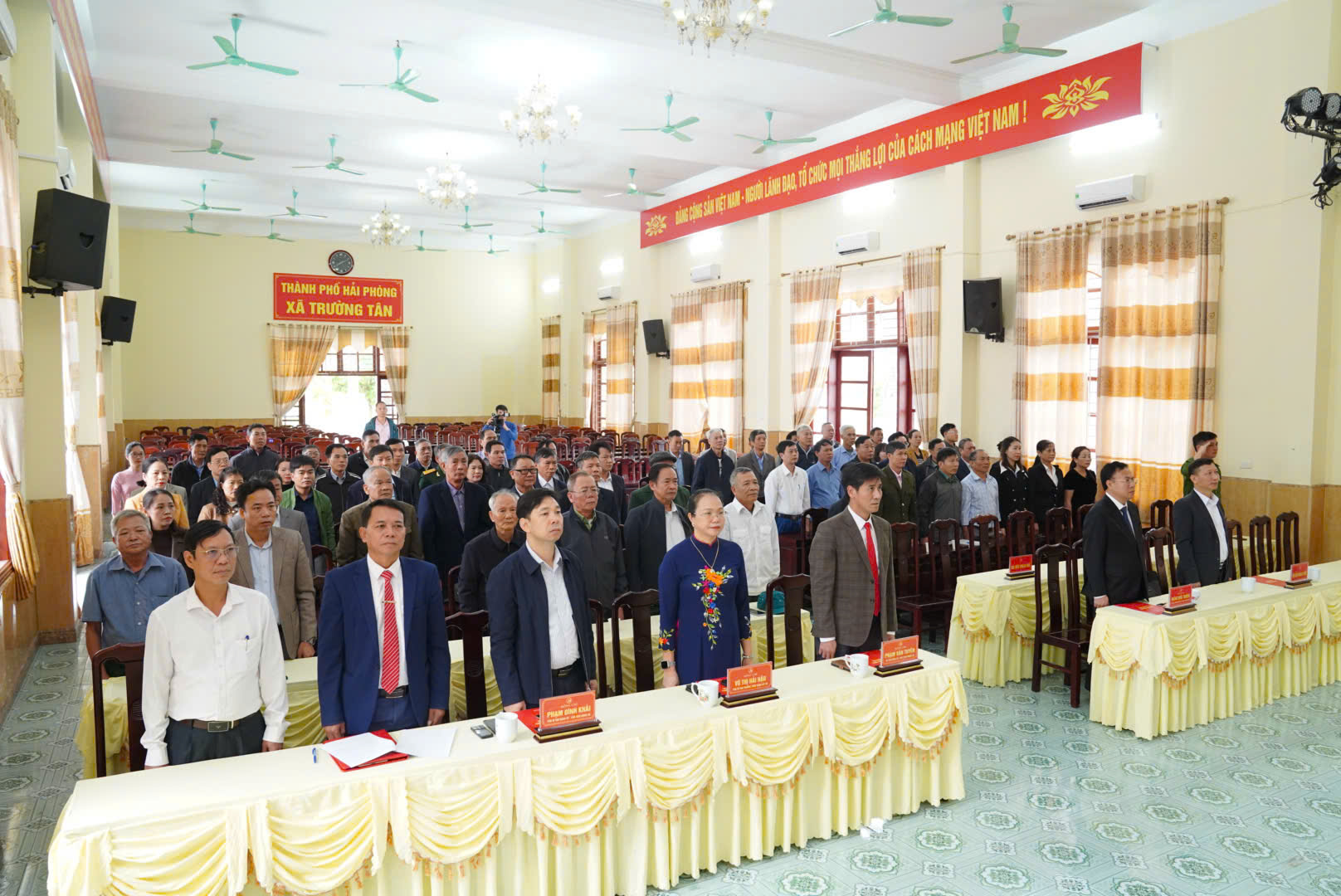 Phát biểu tại buổi lễ, đồng Hoàng Quốc Thưởng – Ủy viên Ban Thường vụ Thành ủy, Phó Bí thư Thường trực các cơ quan Đảng thành phố Hải Phòng chúc mừng và bày tỏ sự trân trọng đối với những đóng góp, cống hiến của các đảng viên được nhận Huy hiệu Đảng đợt này. Đồng chí nhấn mạnh: “Huy hiệu Đảng là phần thưởng cao quý, thể hiện sự ghi nhận của Đảng đối với quá trình rèn luyện, phấn đấu bền bỉ và tinh thần kiên trung của mỗi đảng viên. Mong rằng các đồng chí tiếp tục nêu gương sáng, góp phần giáo dục truyền thống cách mạng cho thế hệ trẻ, xây dựng Đảng bộ xã Trường Tân trong sạch, vững mạnh.”