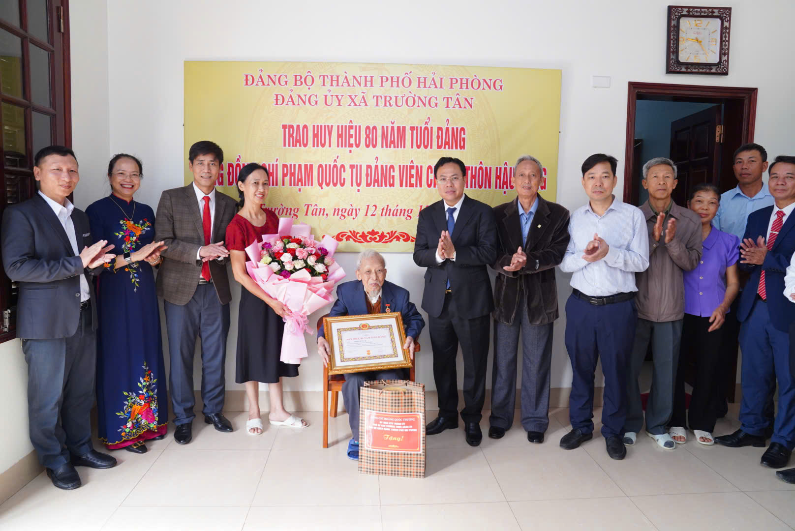 Trong đó, đảng viên Phạm Quốc Tụ, sinh năm 1922, sinh hoạt tại Chi bộ Hậu Bổng, được trao tặng Huy hiệu 80 năm tuổi Đảng và Đảng viên Nguyễn Văn Cát, sinh năm 1939, Chi bộ Quang Bị, được trao Huy hiệu 65 năm tuổi Đảng.