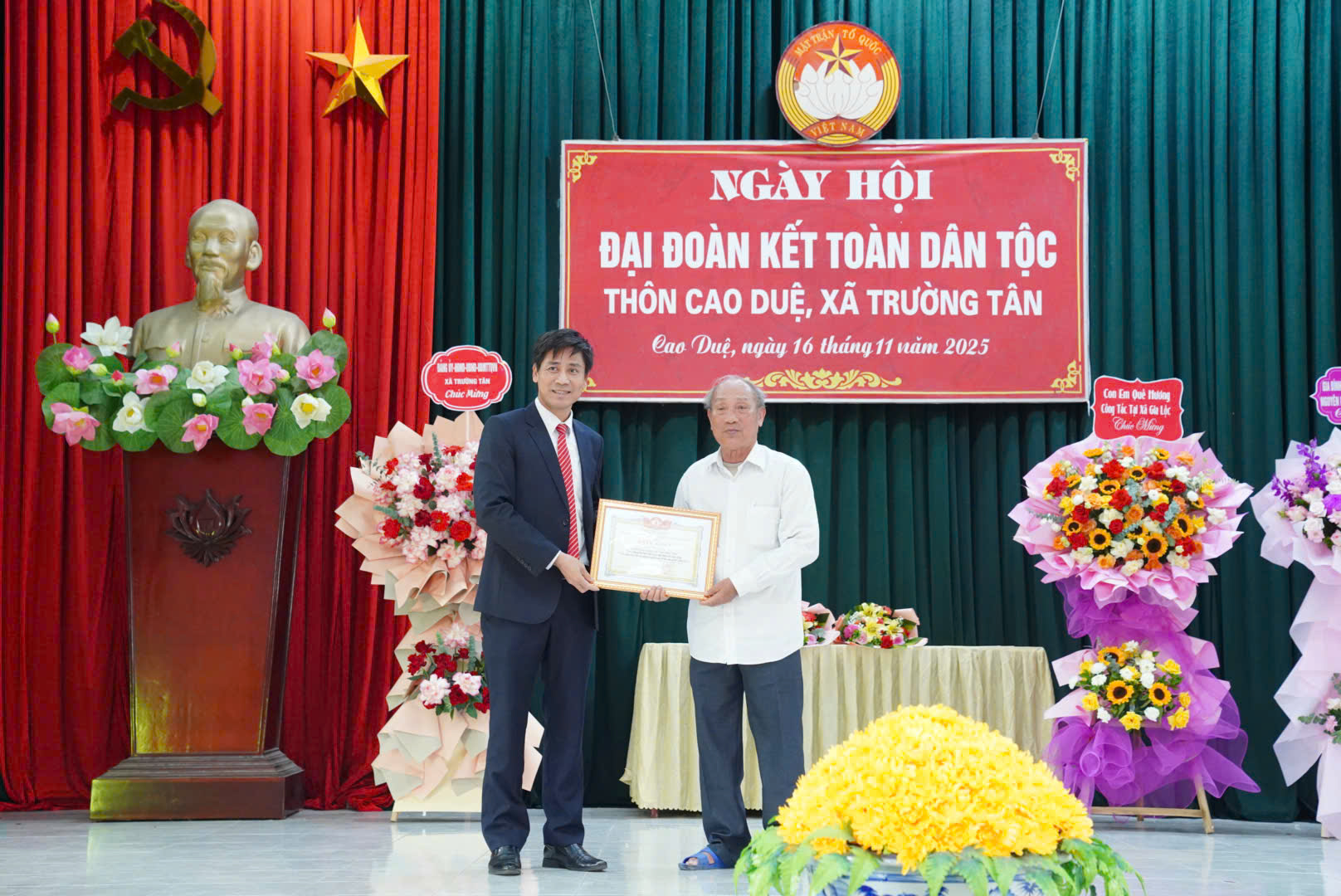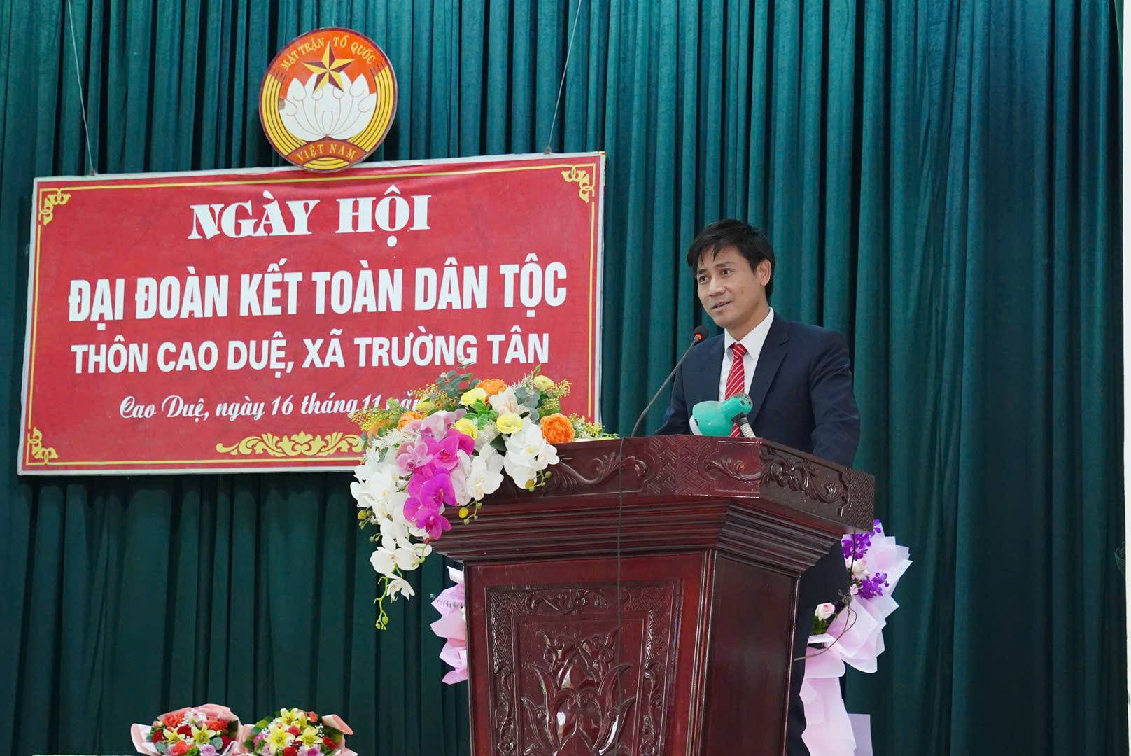 Đồng chí Phạm Văn Tuyên – Bí thư Đảng ủy, Chủ tịch HĐND xã dự Ngày hội tại thôn Cao Duệ, một trong những điểm sáng toàn diện của xã. Tại đây, đồng chí ghi nhận sự đoàn kết, nỗ lực của nhân dân trong xây dựng nông thôn mới nâng cao.