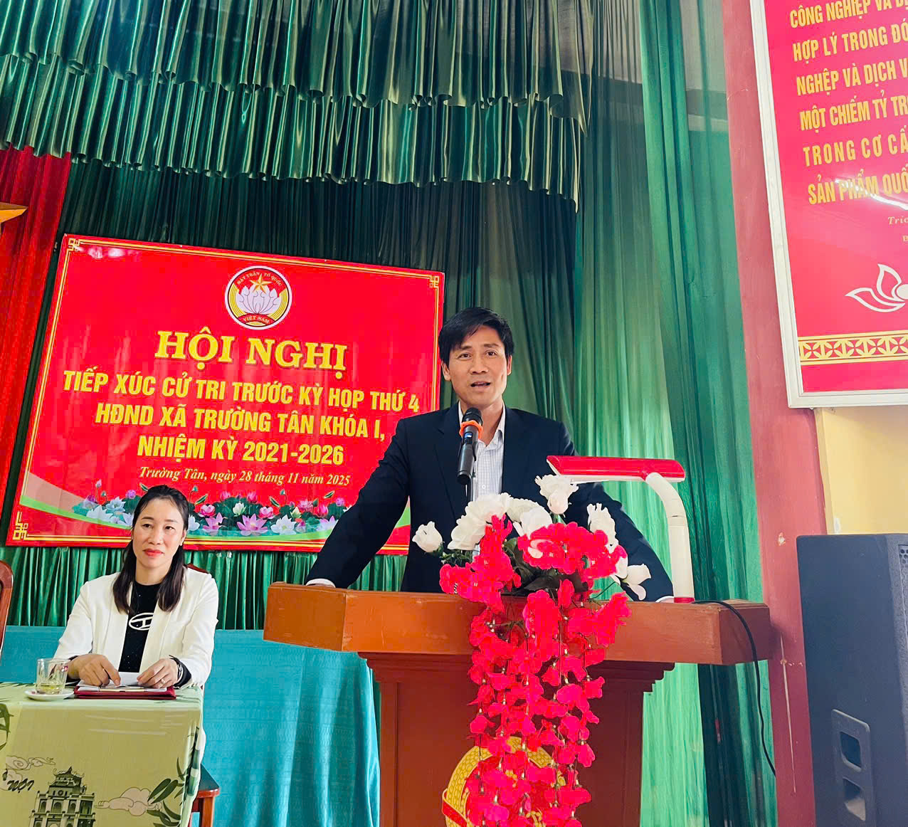 Chiều ngày 28/11, xã Trường Tân tổ chức hội nghị tiếp xúc cử tri nhằm chuẩn bị cho kỳ họp thứ Tư – kỳ họp thường lệ cuối năm 2025 của HĐND xã Trường Tân khóa một, nhiệm kỳ 2021-2026.