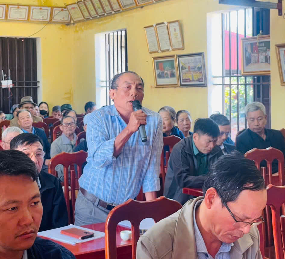 Các ý kiến tập trung vào nhiều vấn đề như: Đề nghị quan tâm nâng cấp hệ thống giao thông nông thôn, tạo thuận lợi cho đi lại và sản xuất; kiến nghị mở rộng các công trình phụ trợ của đình làng, phục vụ sinh hoạt cộng đồng; Phản ánh nhu cầu tăng cường công tác an ninh trật tự trên địa bàn; kiến nghị đến ngành điện lực thông báo lịch cắt điện giúp dân dễ dàng nắm bắt để phục vụ sinh hoạt và sản xuất trong các nhà màng, nhà lưới; đề xuất điều chỉnh thời gian phát sóng của đài truyền thanh sớm hơn để phù hợp với thói quen của người dân; cùng nhiều ý kiến khác liên quan đến đời sống và phát triển của địa phương.